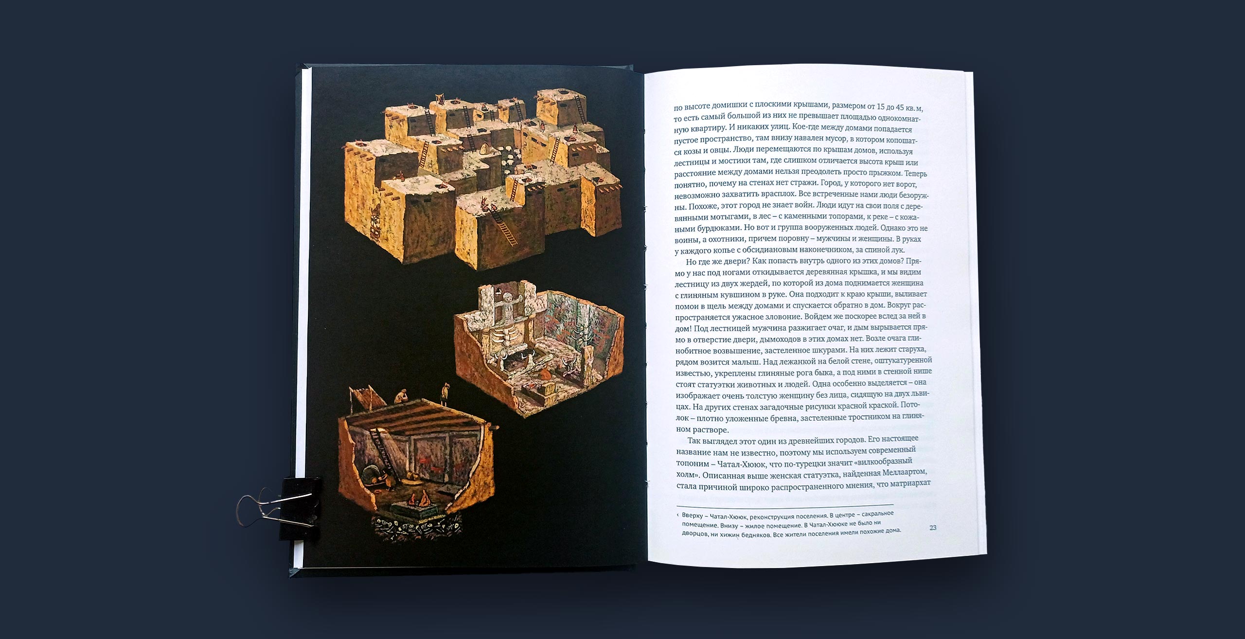 Иллюстрации сделала художница Елизавета Серова. В книге два типа иллюстраций. Достоверные копии музейных источников и исторических реконструкций расположены преимущественно в тексте. Художественные иллюстрации к мифам, легендам и фрагментам эпосов помещены на отдельные страницы на черном фоне, как рисунки мелом на грифельной доске.