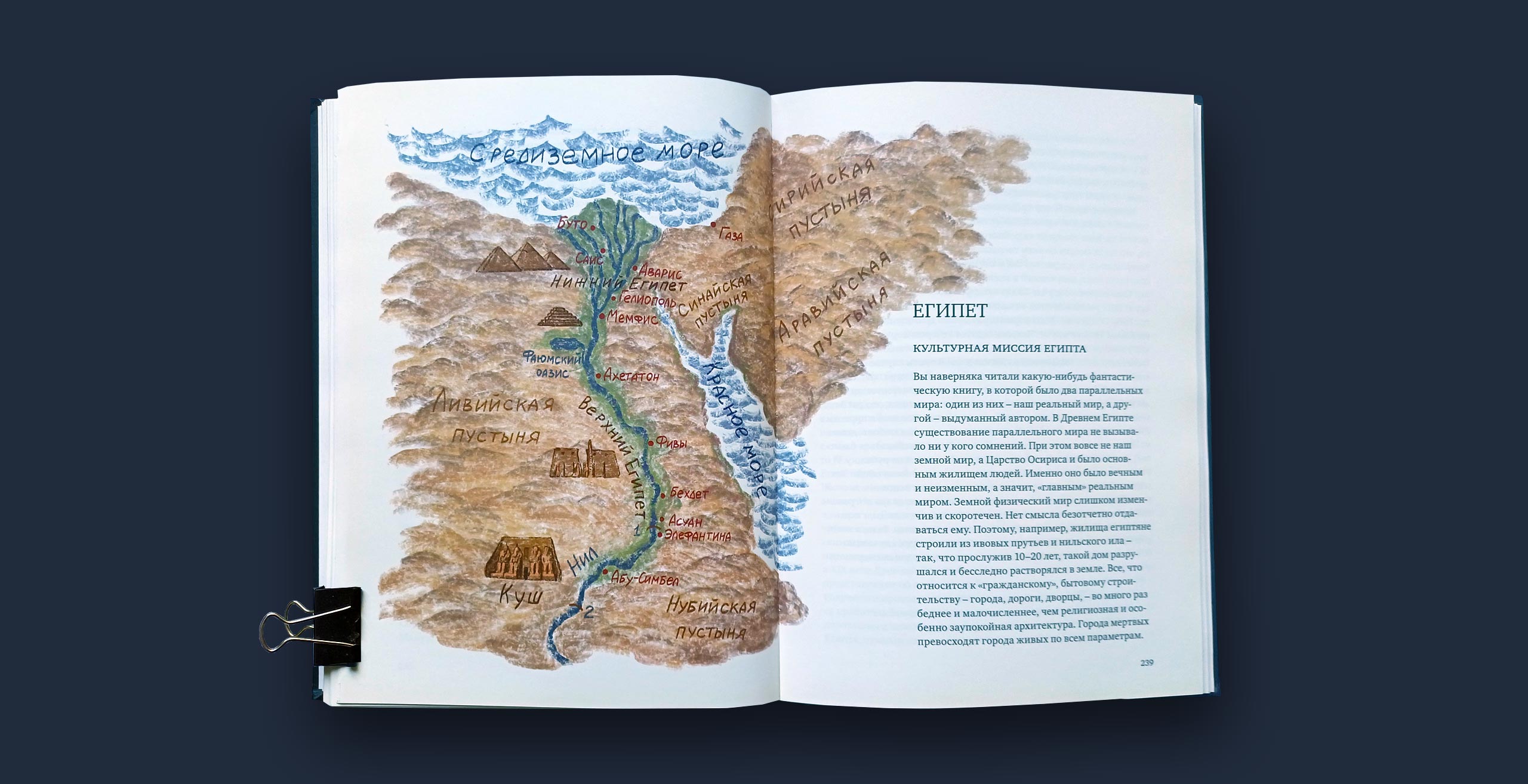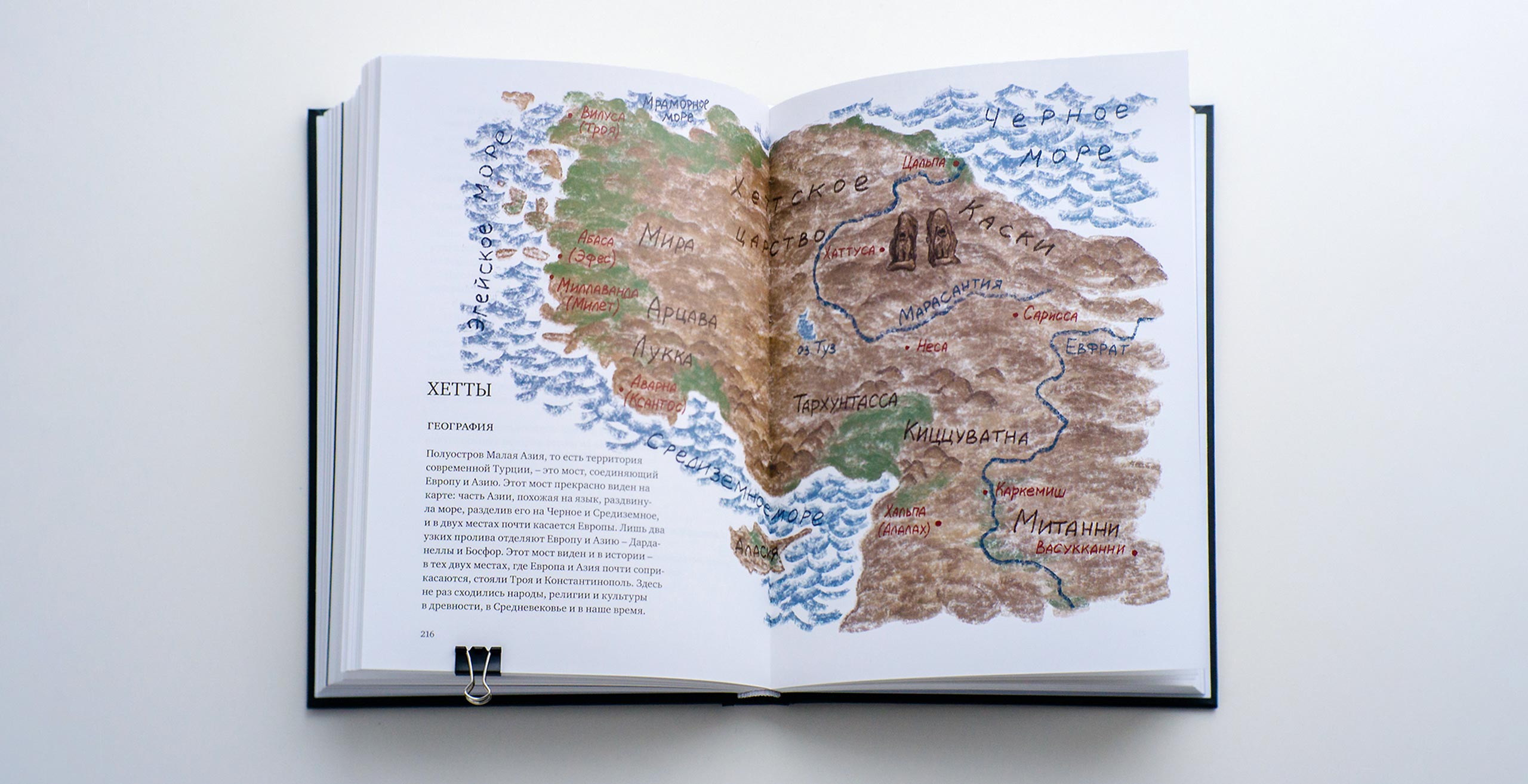 Каждый раздел книги начинается с разворота со схематической картой региона. На полях книги в виде маргиналий располагается справочный материал – термины и определения.