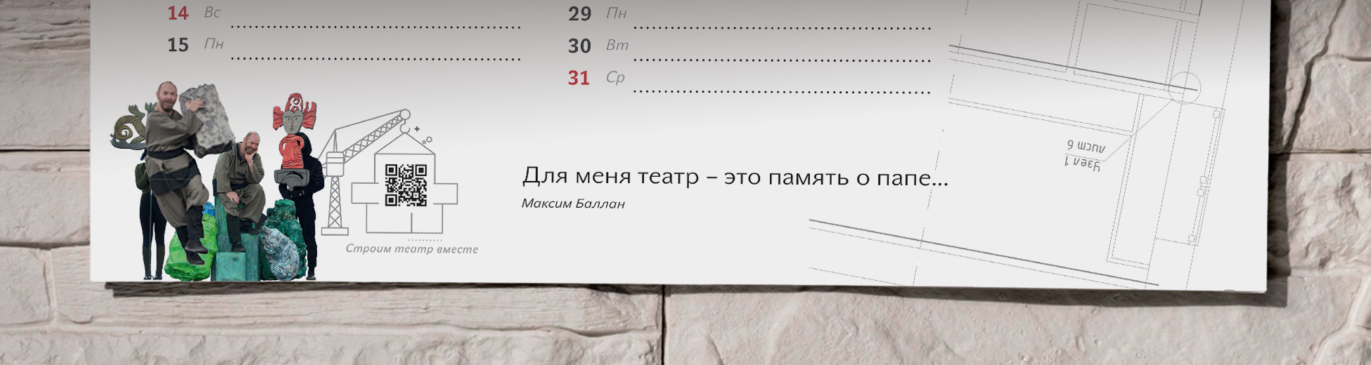Ежегодный настенный календарь посвящен строительству театральной площадки для профессионального особого театра.